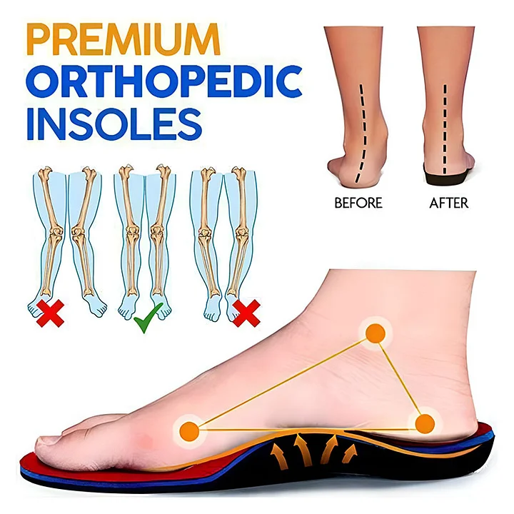 Our premium insoles, featuring anatomical arch support help improve foot and leg alignment, eliminate the Pain caused by flat feet, poor walking posture & plantar fasciitis.