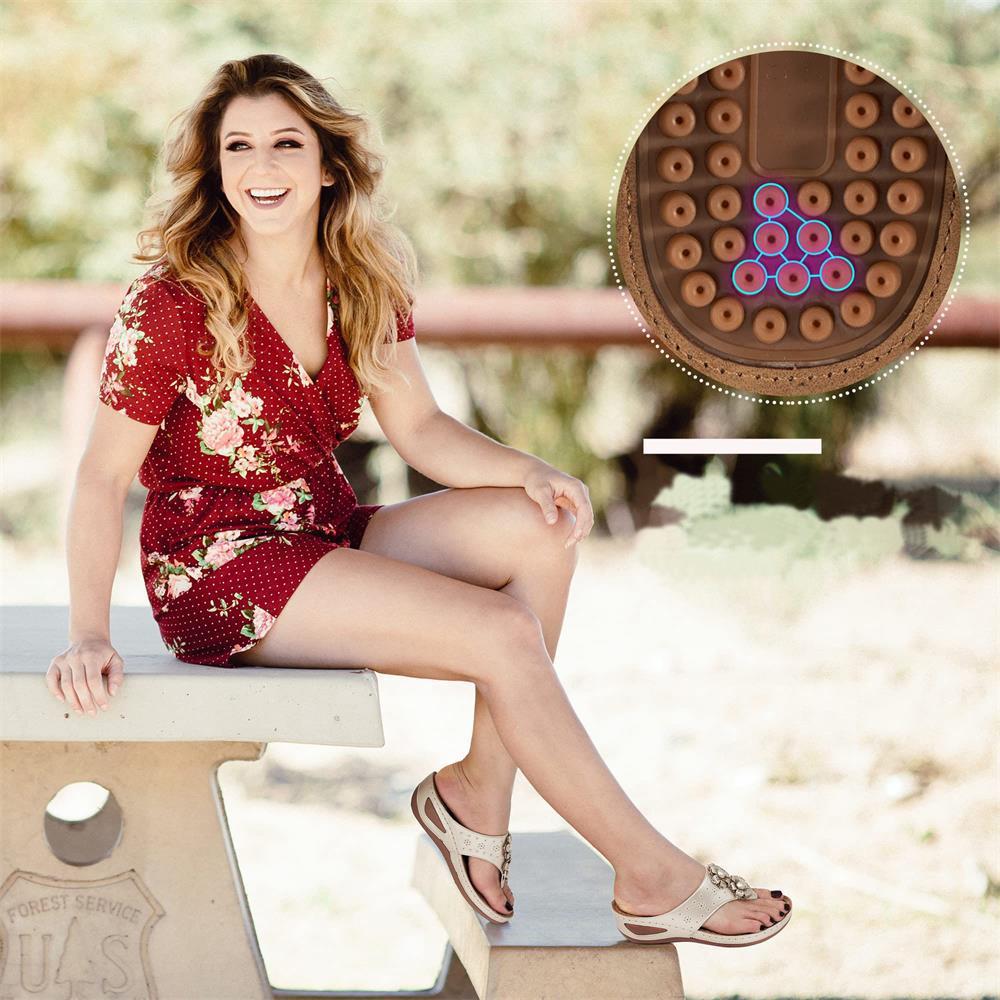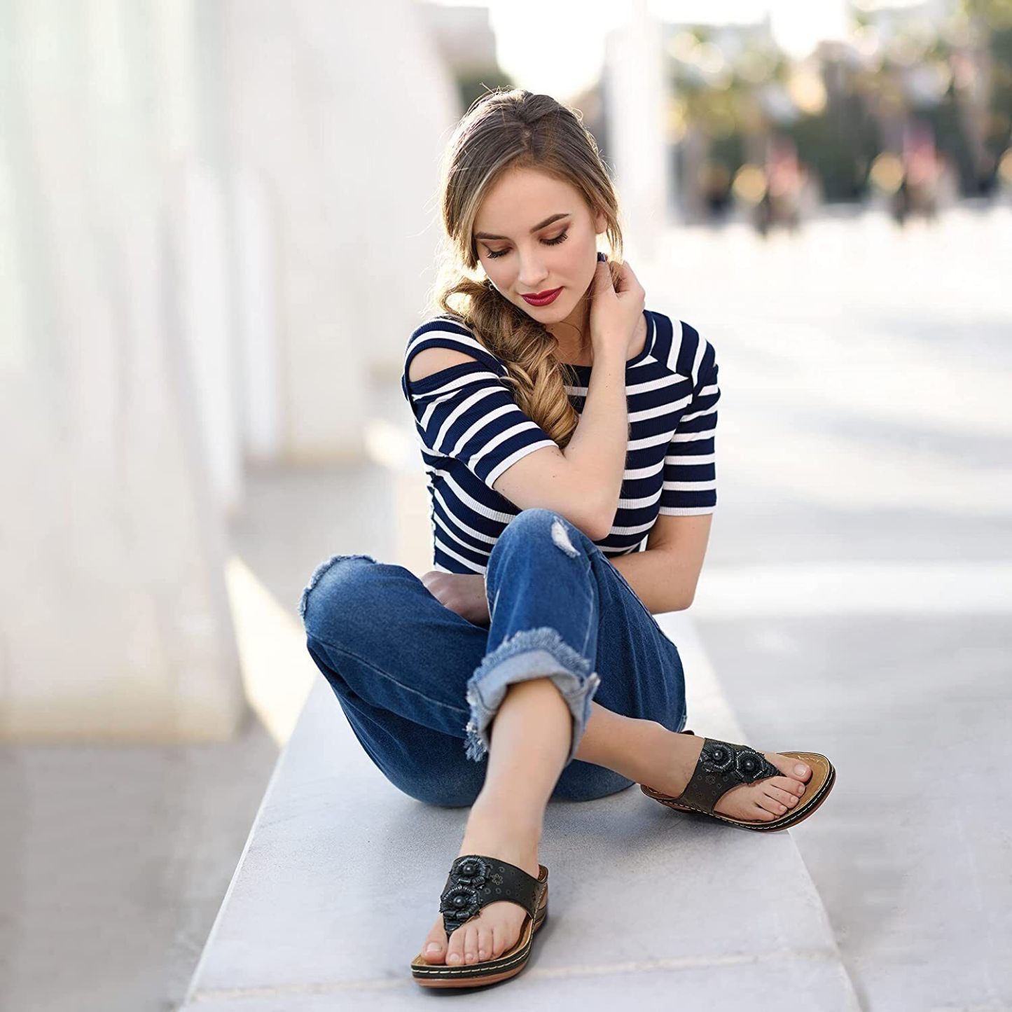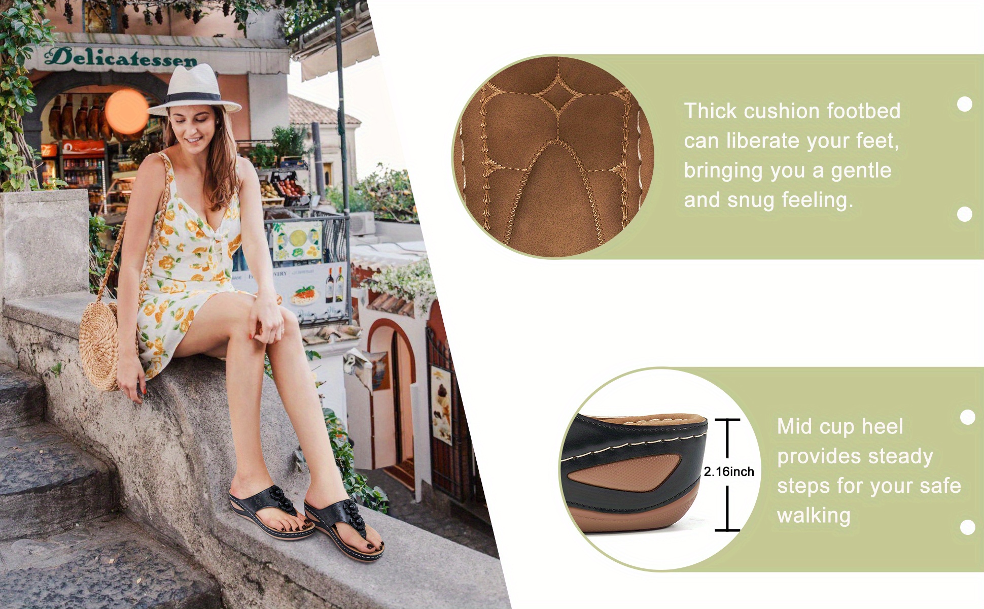 2023 Summer New Women's Metal Decor Feature Pattern Wedge Flip-Flops are specially developed, designed by AZDEALY TEAM, with a three arch support design and a soft sole to keep your feet comfortable, health safe, and style on point!