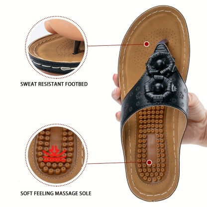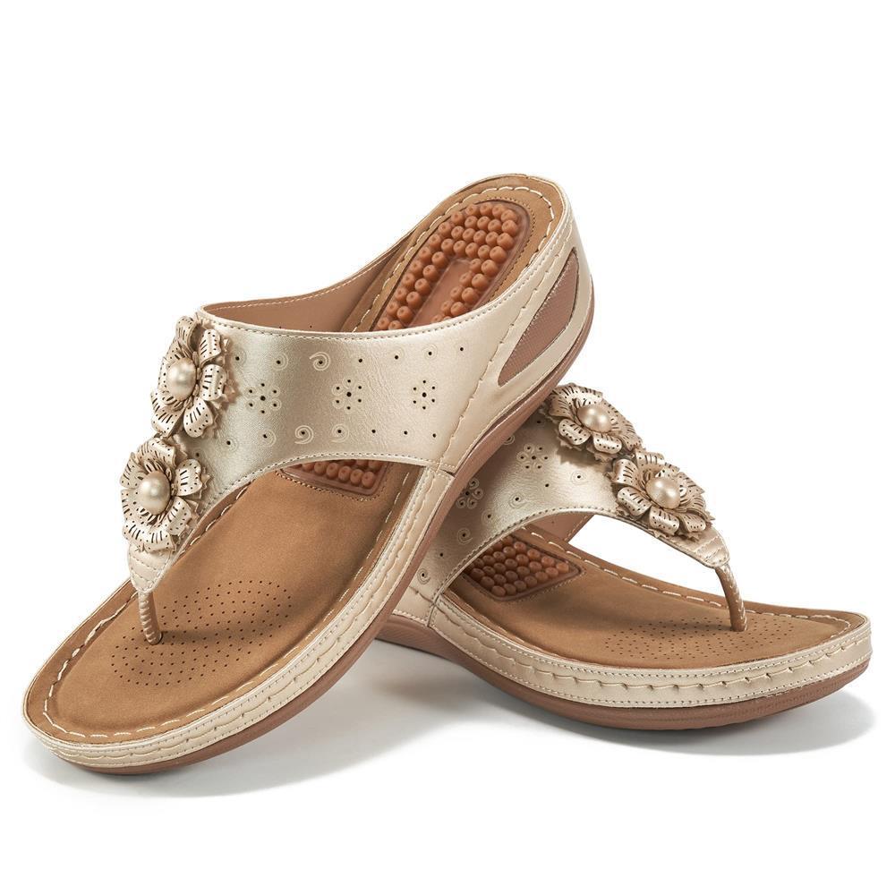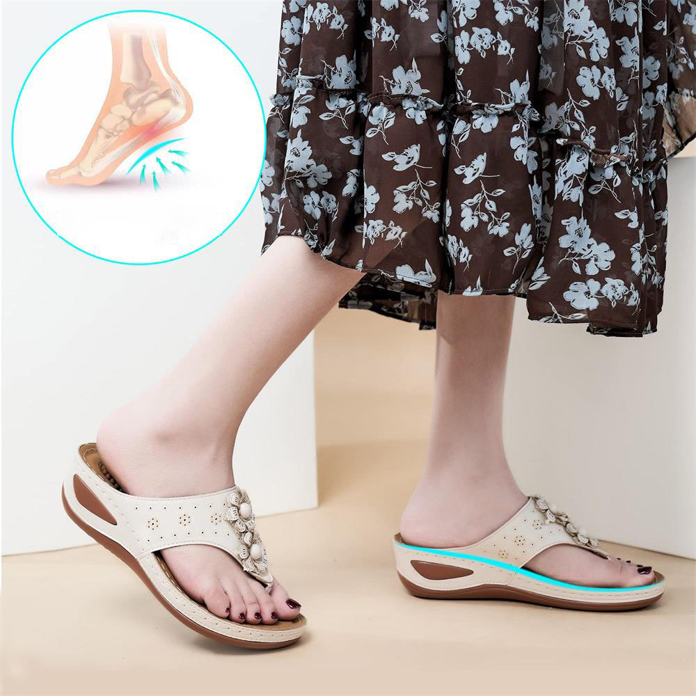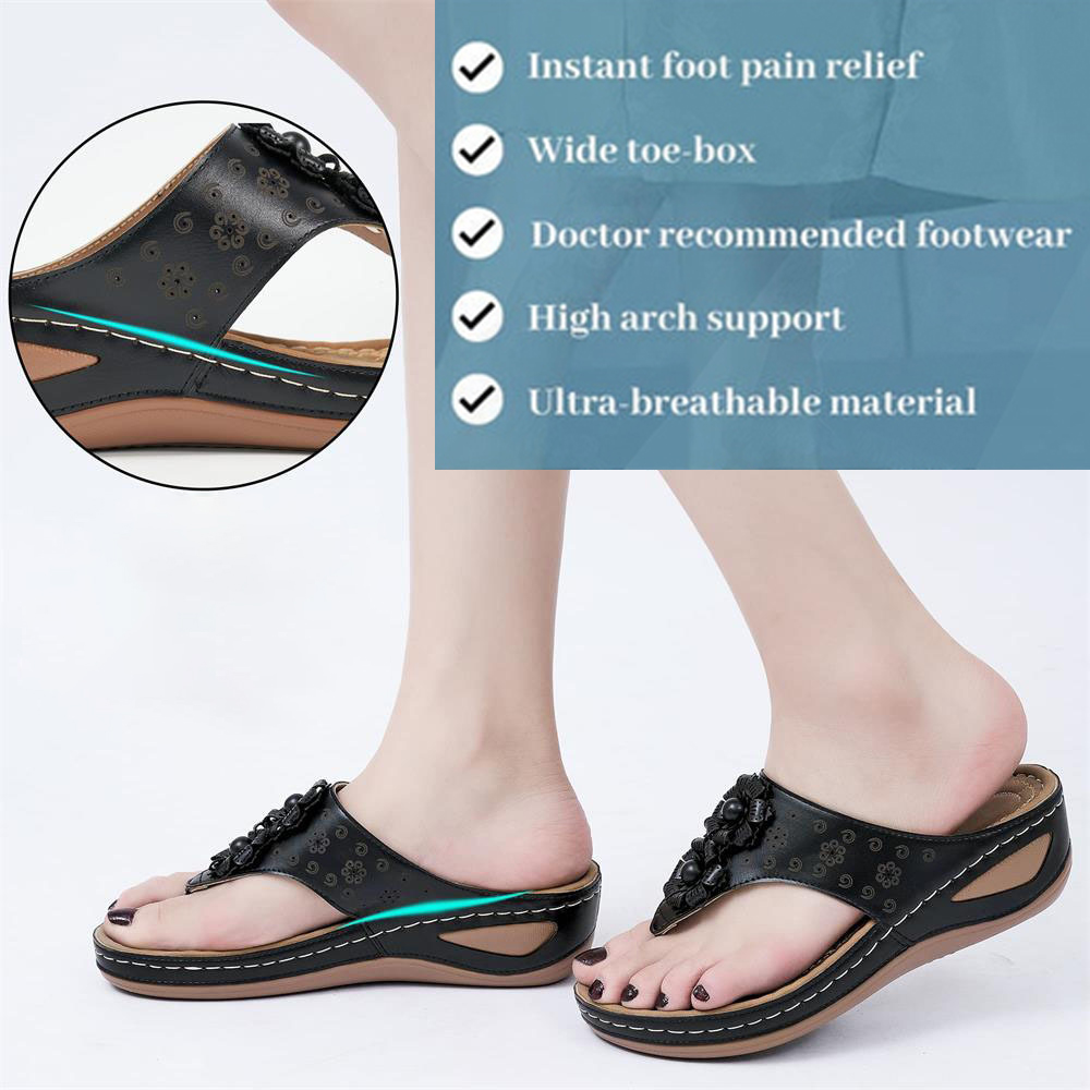 2023 Summer New Women's Metal Decor Feature Pattern Wedge Flip-Flops are specially developed, designed by AZDEALY TEAM, with a three arch support design and a soft sole to keep your feet comfortable, health safe, and style on point!